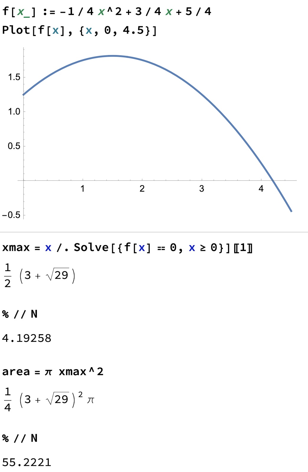 Ahh, det är jag som gjort feltolkning av grafen. Jag fick av någon anledning för mig att avståndet mellan nollställena skulle utgöra diametern och att jag då var tvungen att veta hälften av det avståndet för att beräkna arean, men nu när du säger det förstår jag att det var väldigt fel. Tack för hjälpen :)