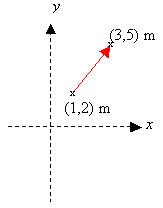En vektor går från punkten (1, 2) m till punkten (3,5) m i xy-planet. Vilken är vektorn?