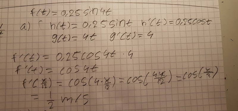 f'(t)=cos(4.0t)Derivera f'(t) så får du f''(t)