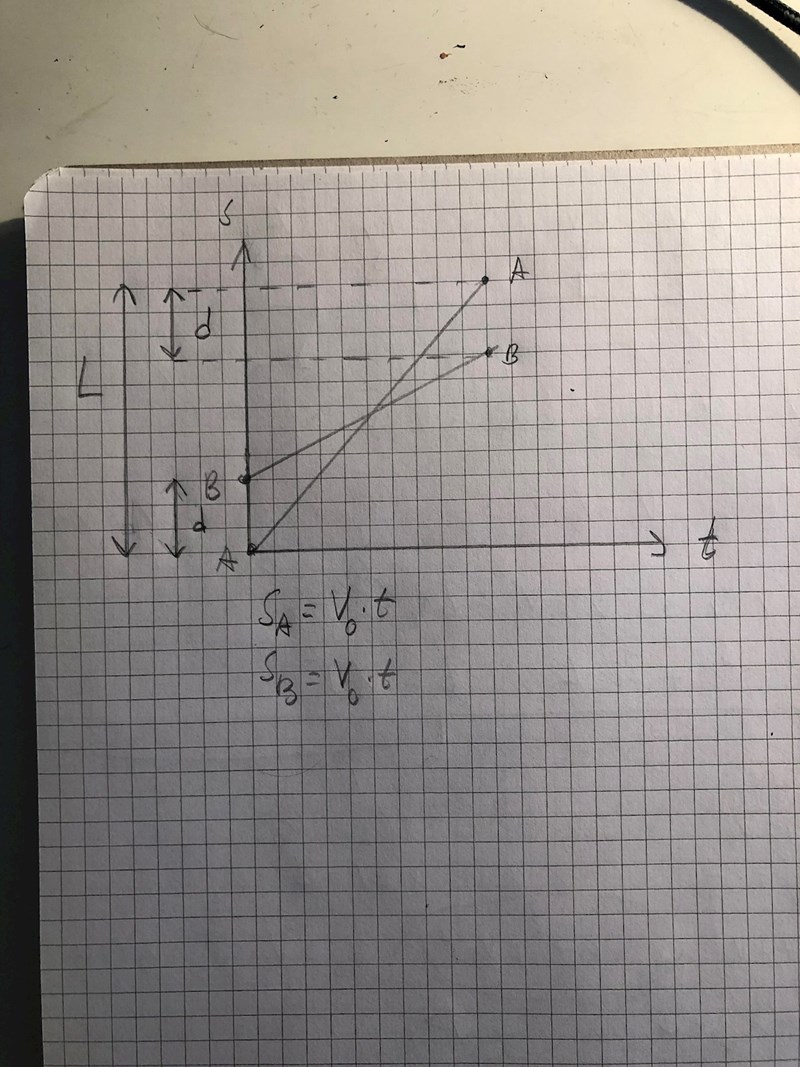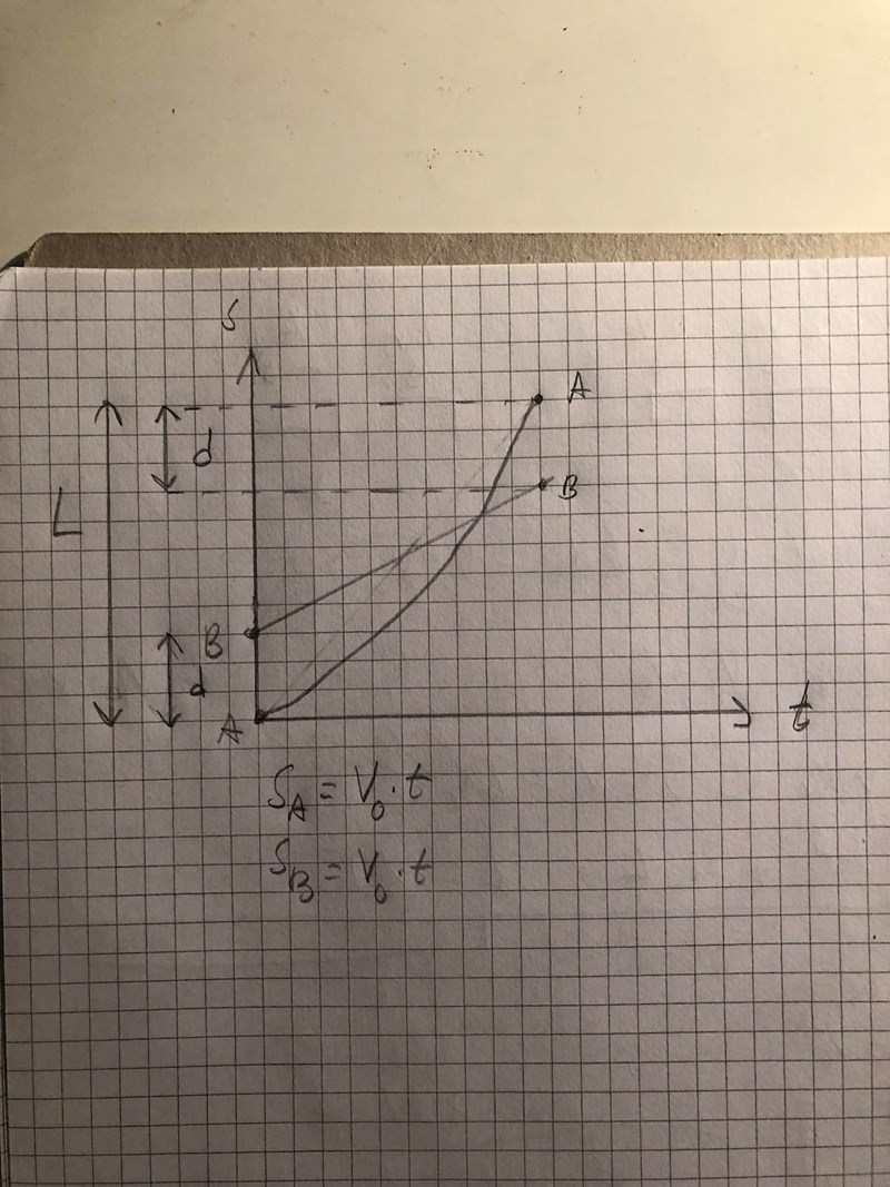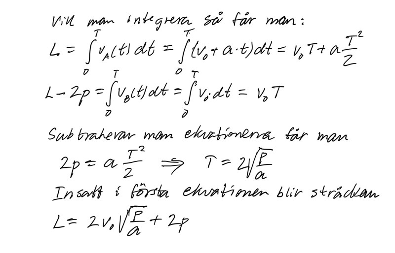 Tänkte att eftersom A reser sträckan L sätter jag den och löser den som vanligt, men funkade väl inte. Kan man skriva om uttrycket på något sätt så det går? Eller bör jag försöka förstå detta istället (lärarens lösningsförslag):