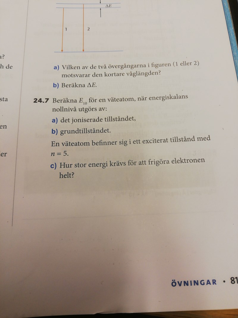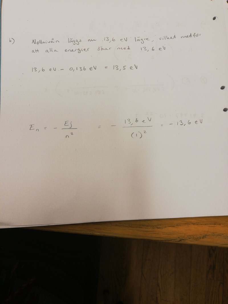 Undrar varför man inte kan göra som jag gjort? (längst ned). Facit svarade det som står högst upp som blir 13,5 eV.
