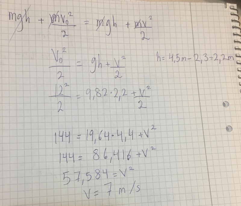 Svar: v= 7,6 m/ s. Jag avrundade fel. Jag gör fel eftersom svaret är 10m/s och någon stans blir det fel