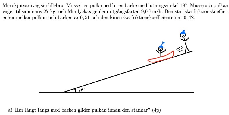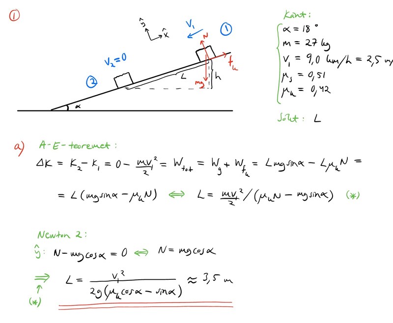 Satsen säger oss att skillnaden i den kinetiska energin är lika med summan av arbetet som alla krafter uträttar på lådan. Därmed ingår in delta U.