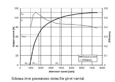 Generatorns varvtal påverkar hur mycket ström och därmed effekt (om spänningen är konstant) generatorn kan leverera.