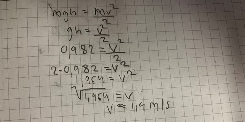 Hej när jag löste denna uppgift fick jag 1,4 m/s. Dock är svaret 2,4 m/s. Kan någon berätta vad jag gjorde för fel?