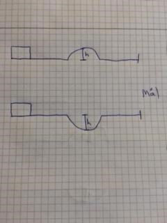 En bil skjuts iväg med en katapult där sträckan är den samma och massan. Vilken kommer först till mål? Jag tycker den under kommer först till mål. Vilken tycker ni?