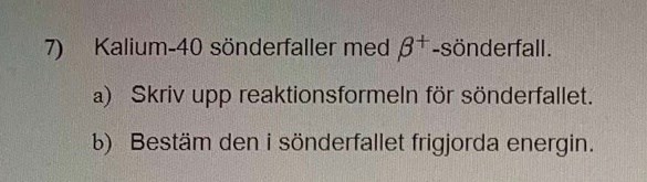 Vi har alltså massan (40K-19e-) = (40Ar-18e-) + e+ + massförlust
