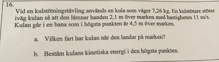 Försök använda dig av tipset du fick. Hur stor är lägesenergin när kulan slår i marken?