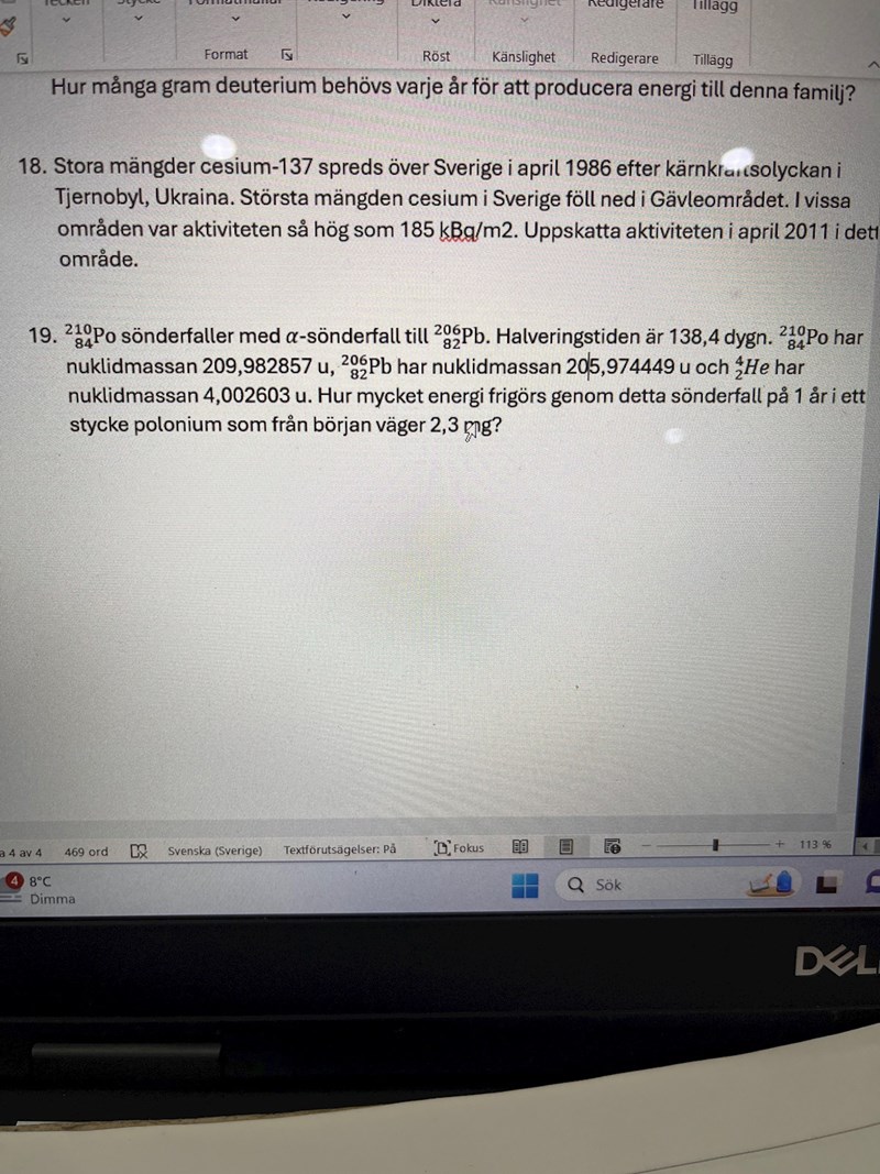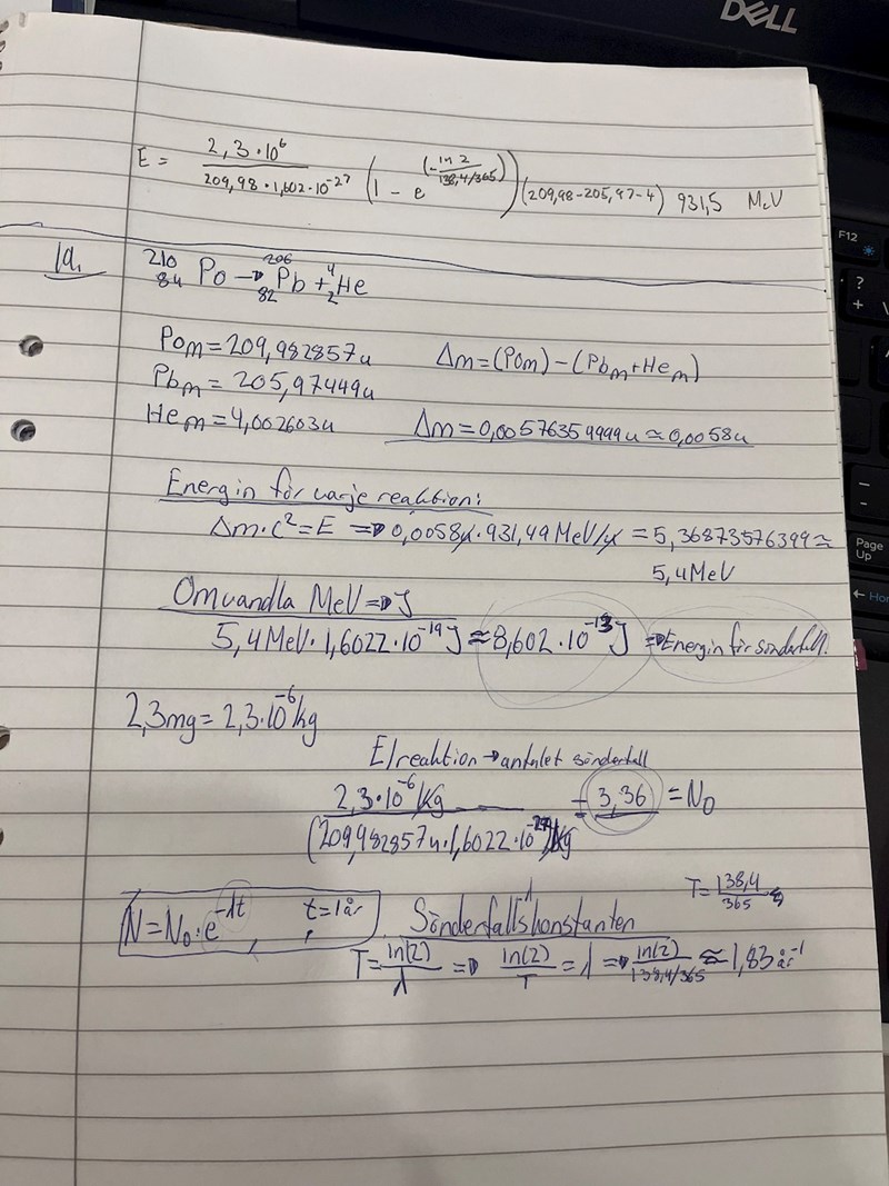 Energi dom frigörs från 2,3 mg polonium på ett år
