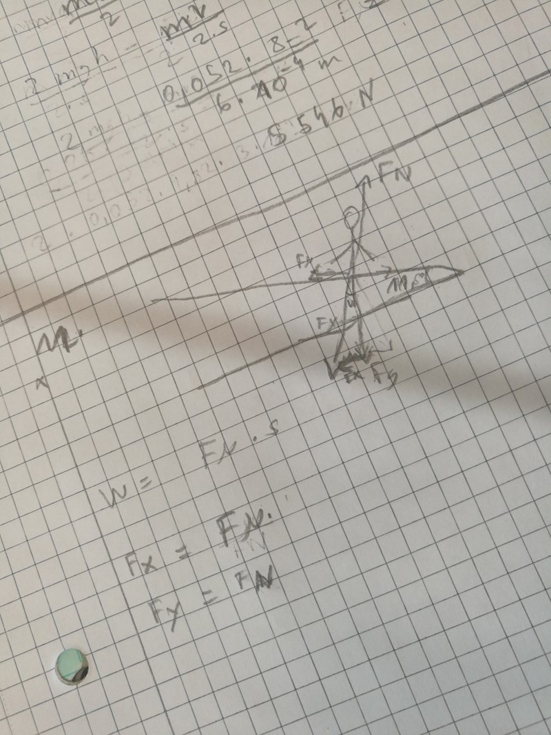 Jag tror att du försöker prata om friktionskraften - stämmer det? Det är iknte friktionen som får skidåkaren att accelerera nerför backen - dessutom sa jag att du skulle bortse från friktionen till att börja med. Varför accelererar inte skidåkaren lika snabbt nerför backen, som hen skulle göra om hen föll rakt neråt?