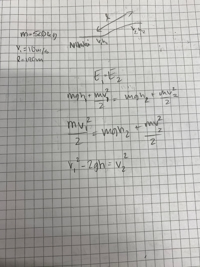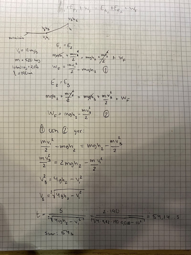 Energiprincipen tänkte jag: 1) rörelseenergi + friktion övergår till 2) lägesenergi + friktion. Då i 1) så är lägesenergin 0 då höjden är 0 och i 2) så är rörelseenergin 0 då den vänder precis vid det tillfället. Rätt fel?