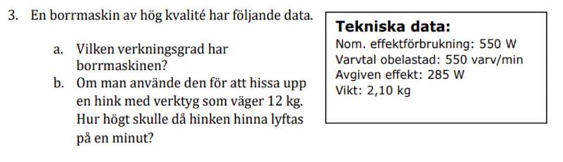Att avgiven effekt är 285 W innebär att borrmaskinen kan leverera 285 Joule per sekund.