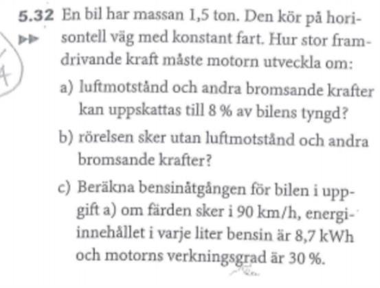 1. P = Fv(Effekten för bilen då den kör med 90 km/h).