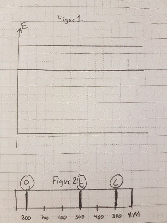 Figur 1 visar ett energinivådiagram för en atom. I diagrammet visas tre energinivåer