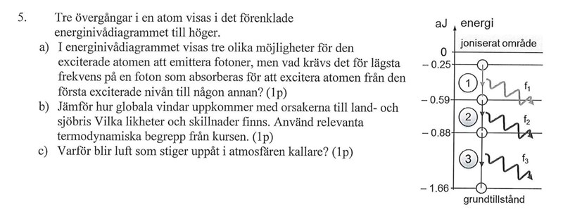 Siffrorna 1 2 3 i figuren ska du tänka bort, de förvirrar bara. Det första exciterade tillståndet ligger vid -0,88 aJ. Eller så har frågan även fel där. Suck, vilken sörja, det går inte att gissa vad som menas.