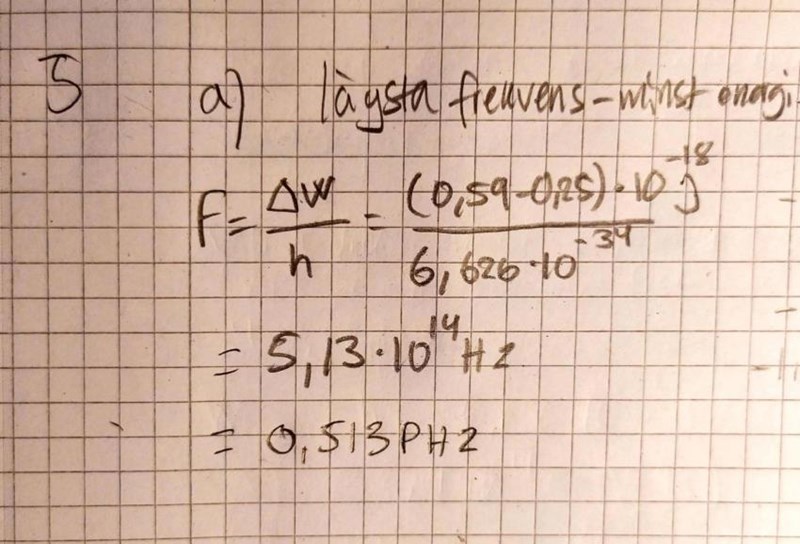 hur kom du fram till att 29 attojoule krävs, samt jag antar att man ska besvara i Hz eftersom det är frekvensen de söker?