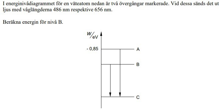 Benämn de olika energinivåerna WAWBoch WC. Uppgiften frågar efter energinivån WB, och WAär känd. Du måste alltså hitta ett sätt att uttrycka WBsom en funktion av WA. Hur kan du åstadkomma det?