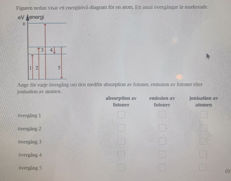 Om atomen får högre energi genom att elektronen exciteras till en högre nivå - absorption av fotoner