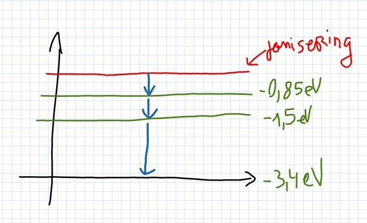 I diagrammet kan jag avläsa -0,85 eV, -1,5 eV, -3,4 eV.
