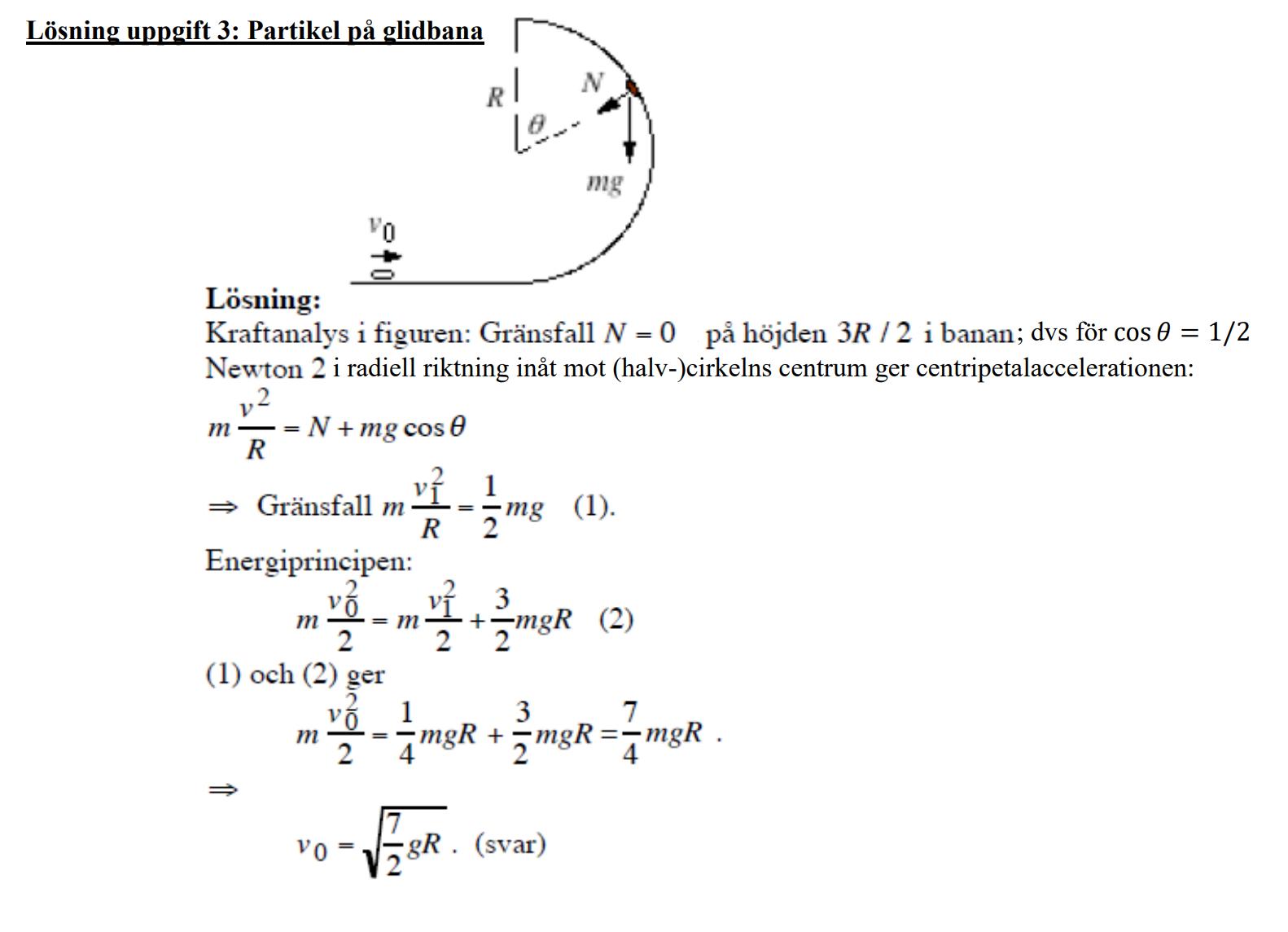 När normalkraften blir 0 då kommer partikeln att släppa kontakten med banan och istället röra sig i en parabelformad bana. Ekv 1 säkerställer att normalkraften är >= 0.