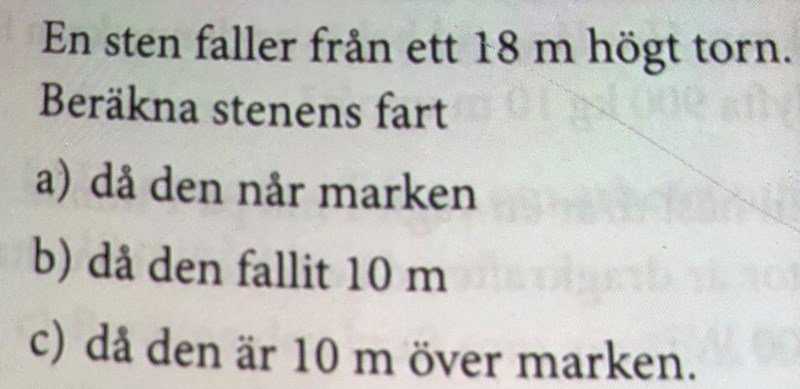 I a-uppgiften satte jag h=18 och fick rätt svar, men b-och c-uppgiften som blev fel. Det som förvirrar mig är att det står i min fysikbok att h är höjden över nollnivån. Syftet med den här uppgiften var ju att lära sig om h räknas som sträckan nedåt eller uppåt, men det blir lite förvirrande.