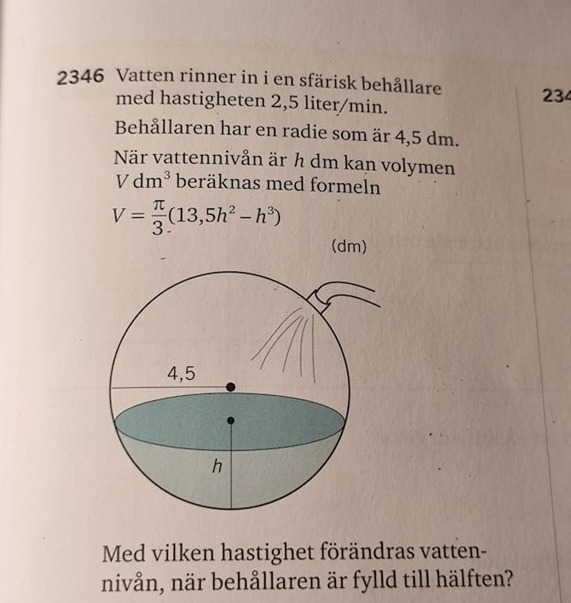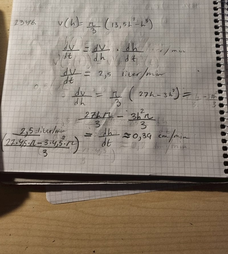 Vet inte vad för enhet som ska stå i dv/dh. Och jag skrev bara cm/min bara för att det stod så i facit men annars visste jag inte vilken enhet.
