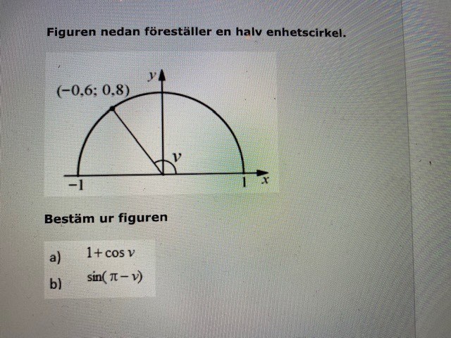 Kan du bestämma cos(v) från figuren? Lägg sedan till 1.