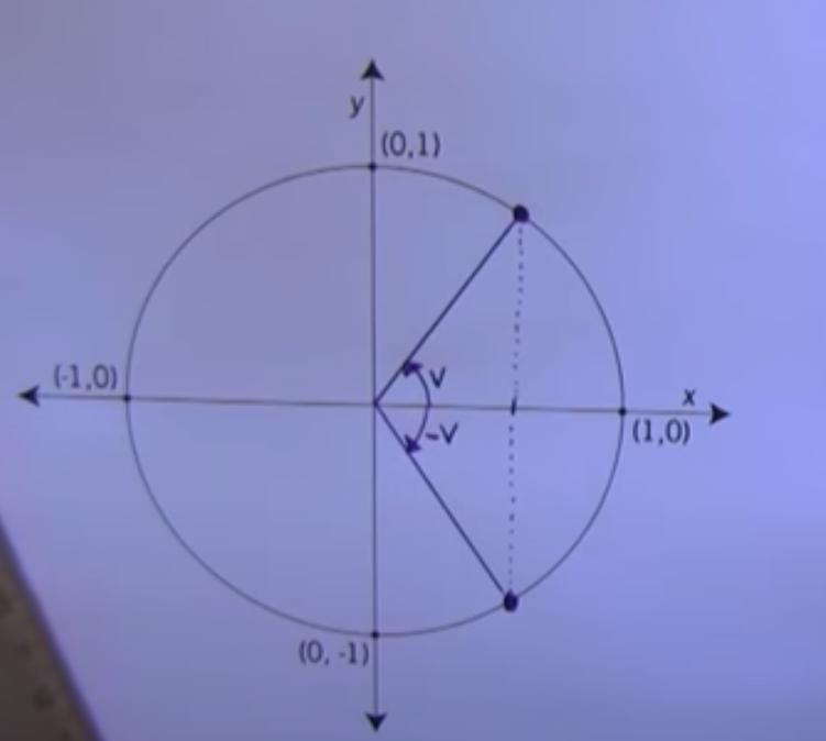 Det ör meningen att du skall se att cos(-v) = cos(v), men att sin(-v) = -sin(v).