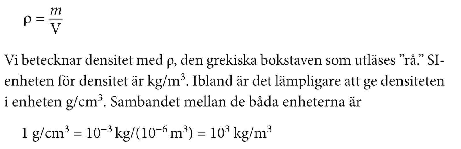 I så fall borde du vara med på att 1 kg/m3 = 103/106 g/cm3 = 10-3 g/cm3 och alltså att 103 kg/m3 = 103•10-3 g/cm3 = 1 g/cm3.