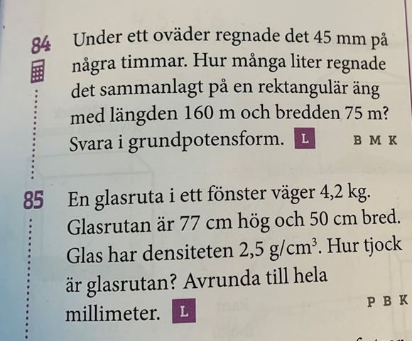 Min man köpte en regnmätare i somras, men när han kom hem såg han att det stod enheten mm/m2 på den. Han gick och hämtade en penna och ritade över /m2. Den vanliga enheten för regnmängd är mm, men l/m2 skulle också ha varit OK.