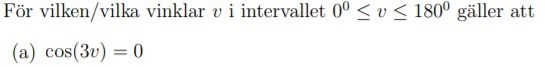 Fick svaret till , eftersom det endast är i intervallet får jag endast ett svar, v=30.