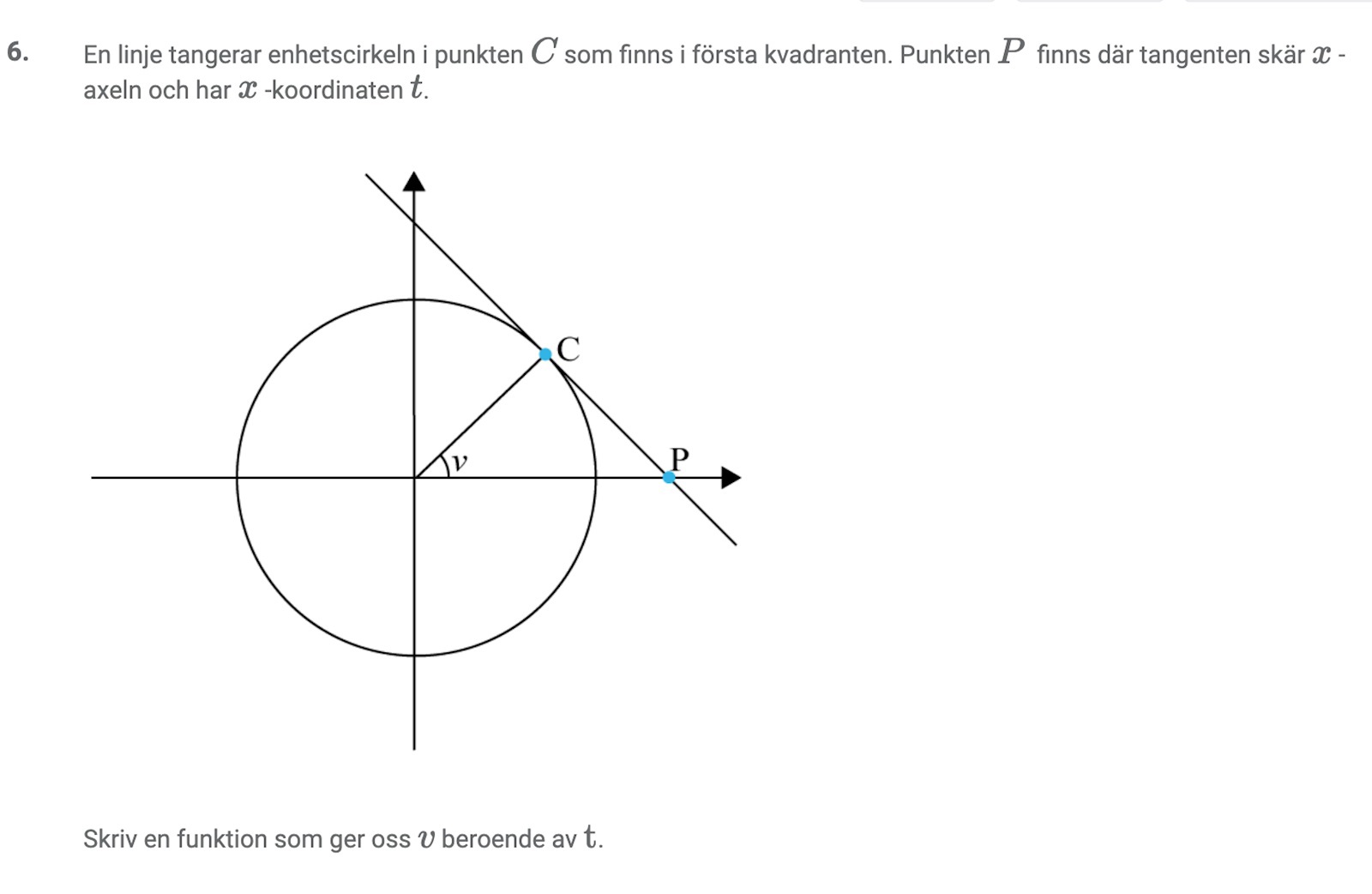 Sträckan AB kan uttryckas med hjälp av vinkeln v, sträckan AC är känd och sträckan AP är lika med t.