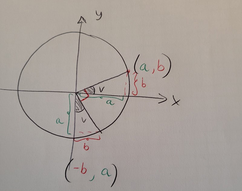 Jag behöver lite hjälp med b) jag vet att den ( x i (x,y) som är sökt) är 90 grader ifrån (-a,-b). Hur kan jag komma vidare?