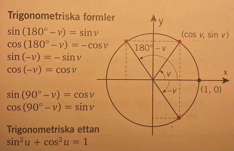 sen kollar jag på formel blad eller enhetscirkel som visar värdet