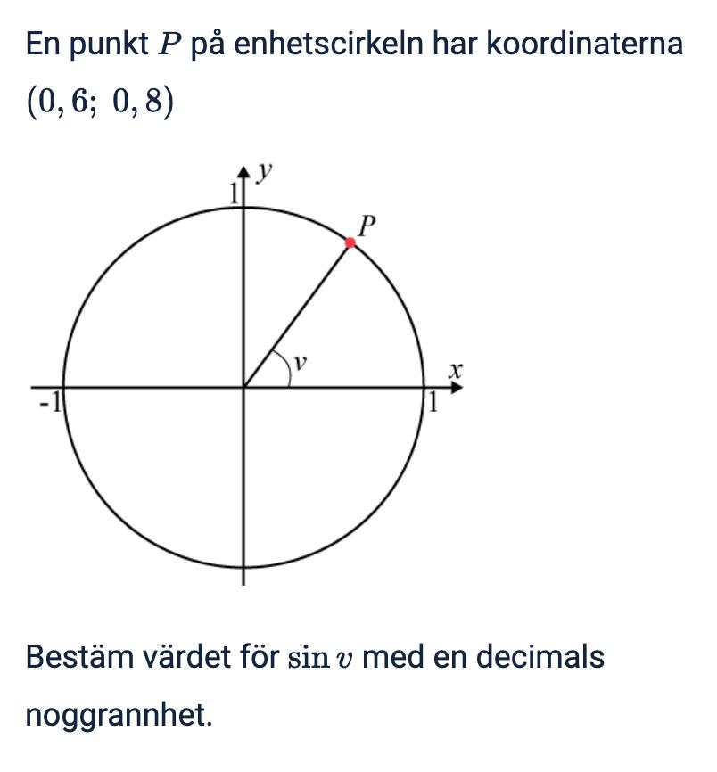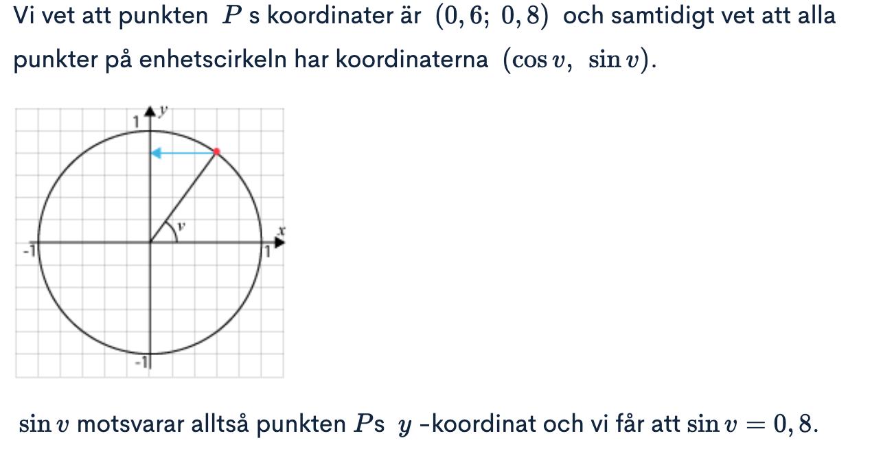 En bra sak att ta med sig från den här uppgiften är att en punkt på enhetscirkeln har koordinaterna (cos(v), sin(v)).