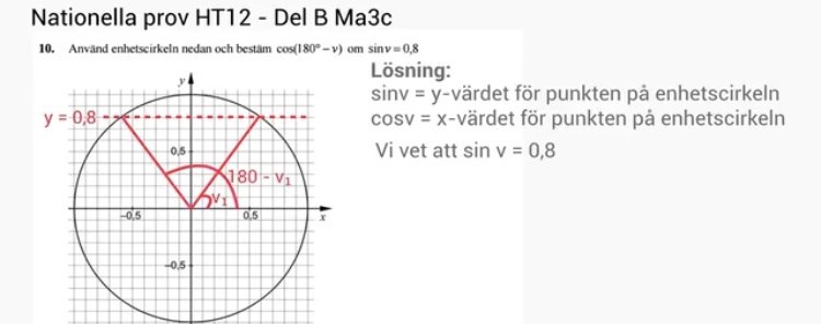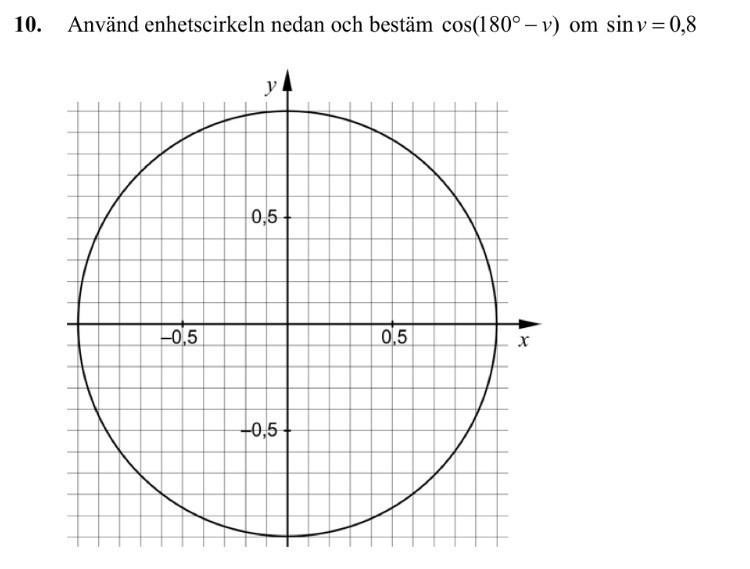 Jag vet att sin v = 0,8 innebär att y värdet är 0,8 men vad vet vi om vårt v? Jag vet att cos v avser vinkeln mellan x och y.