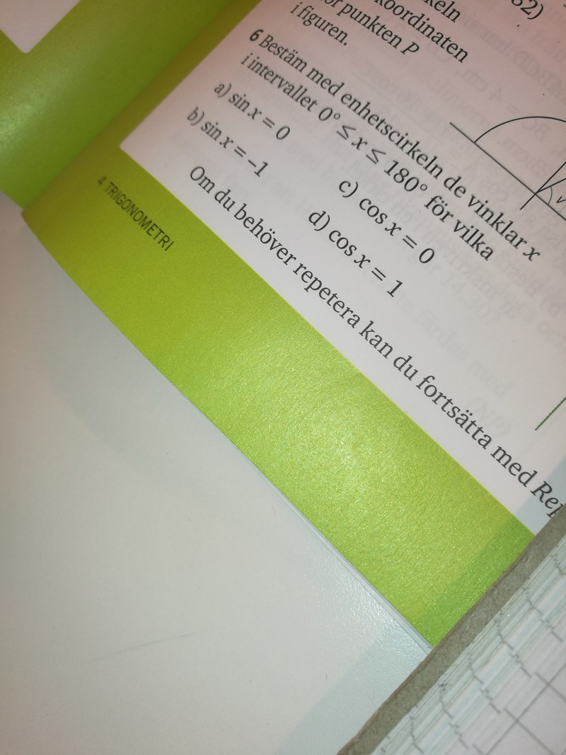 a) så förstår jag inte vad det innebär när det står sin x = 0 , betyder att att när y är 0 och x är 1 så ska det gå gå någon vinkel??