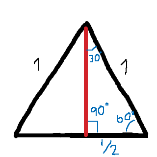 Varje triangelhalva är då en rätvinklig triangel med vinklarna 30°, 60° och 90°.