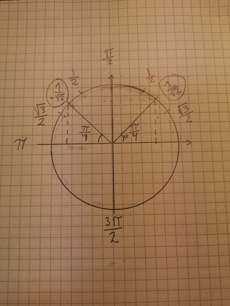 Nu när vi vet att vinklarna är 45grader alltså pi/4