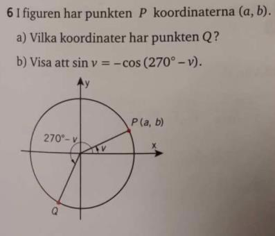 Kan du få fram hur stor vinkeln mellan negativa y-axeln och radien mot Q är?