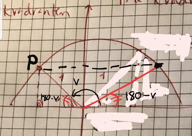 Ja, men felet i den figuren var att vinkeln i den rätvinkliga triangeln angavs som v och inte som 180-v. Då blir det direkt felaktigt att säga att kateten har längden -cos(v).
