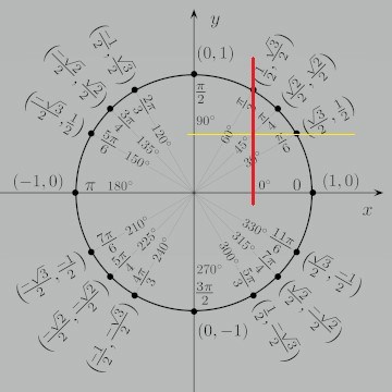 Gul linje:  sin 30  = 1/2    (sinus avläses på y-axeln)
