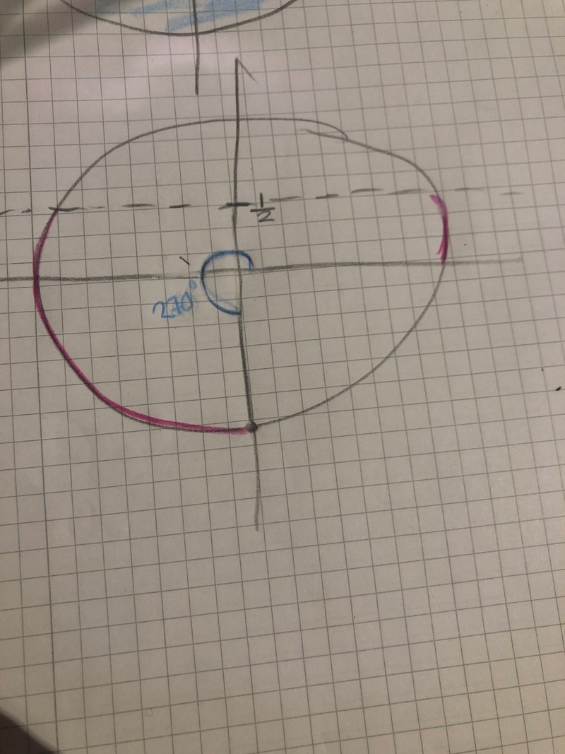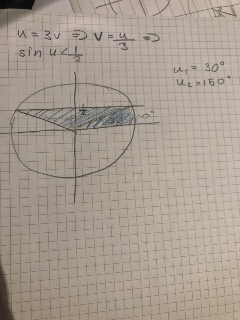 Förstår inte riktigt vilken del av cirkelns rand som uppfyller sin(u) < 1/2,dels 0° < u < 270°.