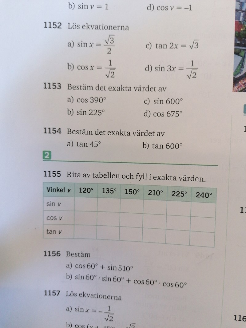 Du drar ju en korrekt slutsats på den första lappen, vinkeln är 240 och det blir i 3:e kvadranten.  Men vad har sin för tecken i 3:e kvadranten? Fyll i tabellen i uppg 1155 så förstår du.
