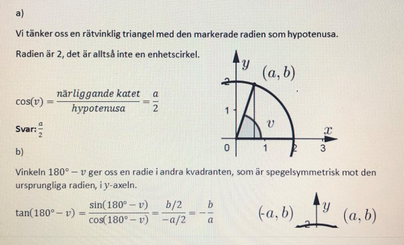 Varför kan man i denna uppgift använda sig av enhetscirkelns principer trotsa att radien inte är 1 i cirkeln?