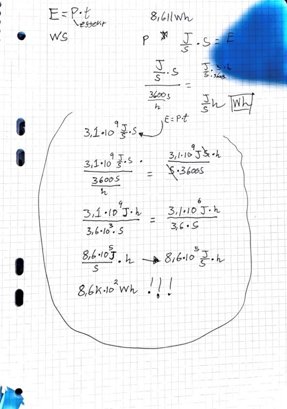 J/kwh/kg.. Då sa läraren att jag kan multiplicera med 3600s/h för att få samma enhet uppe som nere. Då ska det i teoretisk se ut så här. och då ska det bli ? dvs bara kg ska bli kvar. Men det blir inte de när man försöker räkna ut ekvationen....