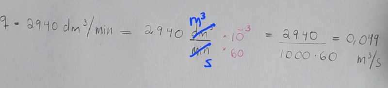 Det skulle inte stått dm^3/h utan dm^3/min och då borde detta stämma.