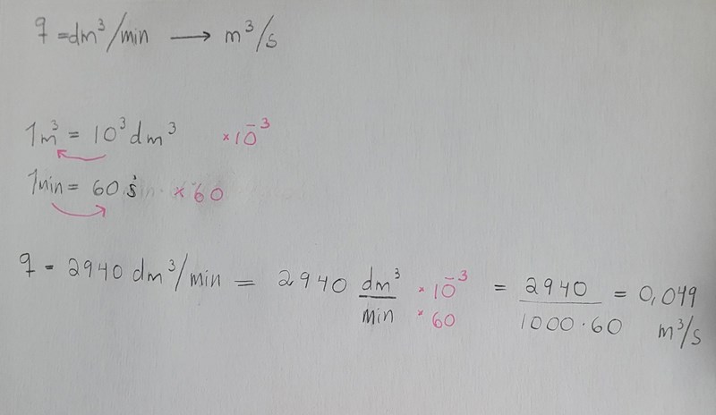 Jag har inget facit på denna omvandlingen, men tänker jag rätt här? Jag vill gå från dm^3/h till m^3/s.