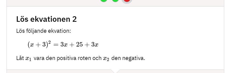 Skaft skrev:Vet inte om "enkel andragradsekvation" är så väldefinierat. Men, börja med att utveckla vänsterledet med kvadreringsregeln, det kan vara så att du inte behöver besväras så mycket av de där x:en i slutändan =)