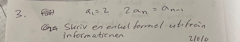 Börja med att skriva ut några termer i början av talföljden, så att vi vet vad det är vi håller på med.